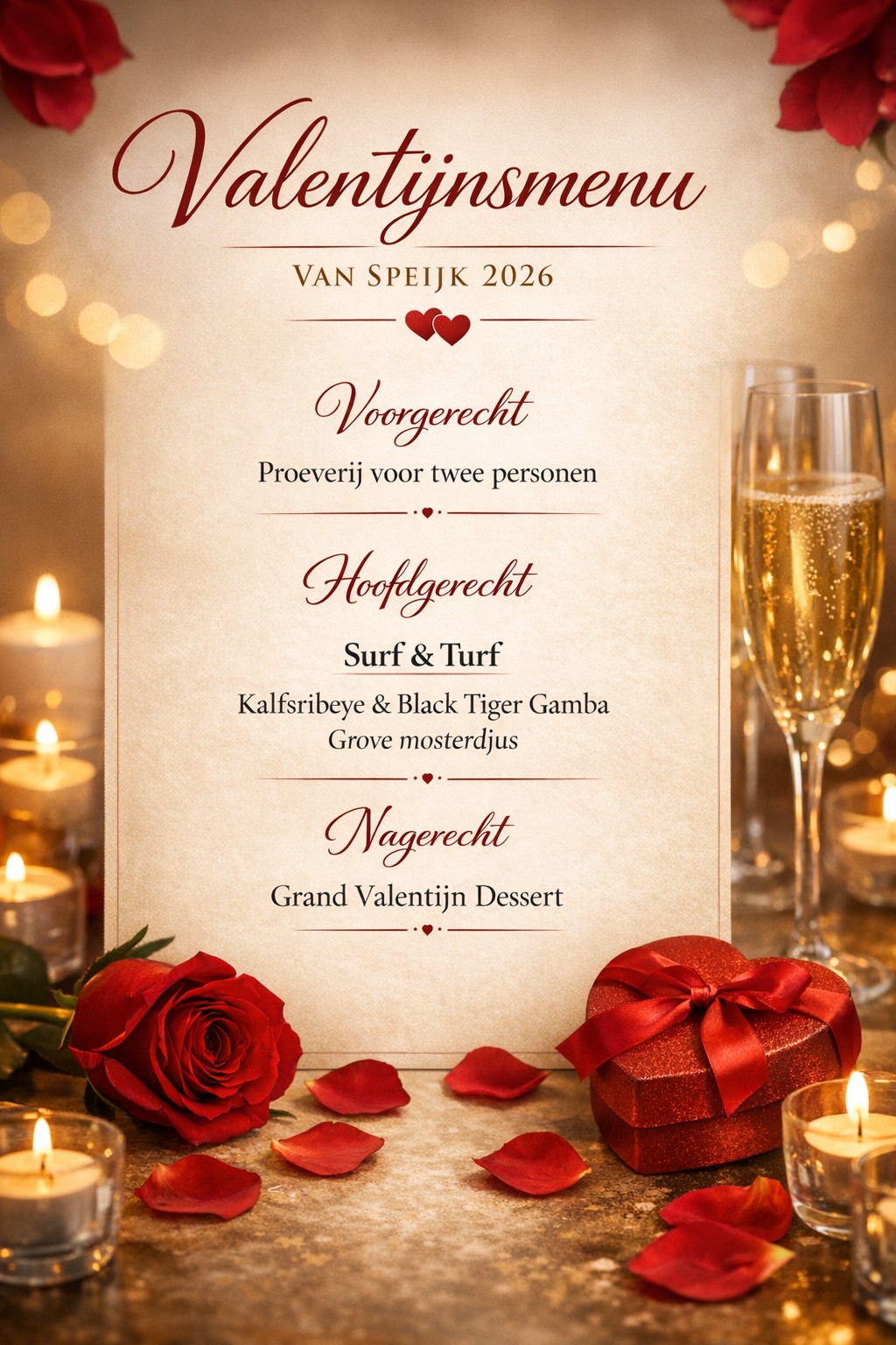 De feestdagen zijn alweer ver achter ons — hierdoor gaan wij bij Van Speijk er weer een prachtig valentijnsmenu uitgooien. Ons valentijnsmenu wordt binnenkort bekendgemaakt, en de reserveringen lopen al snel binnen. Of je nu kiest voor een feestelijk valentijndiner of liever à la carte geniet van onze vertrouwde gerechten: bij ons beleef je de valentijn in een liefdevolle, sfeervolle ambiance aan zee.